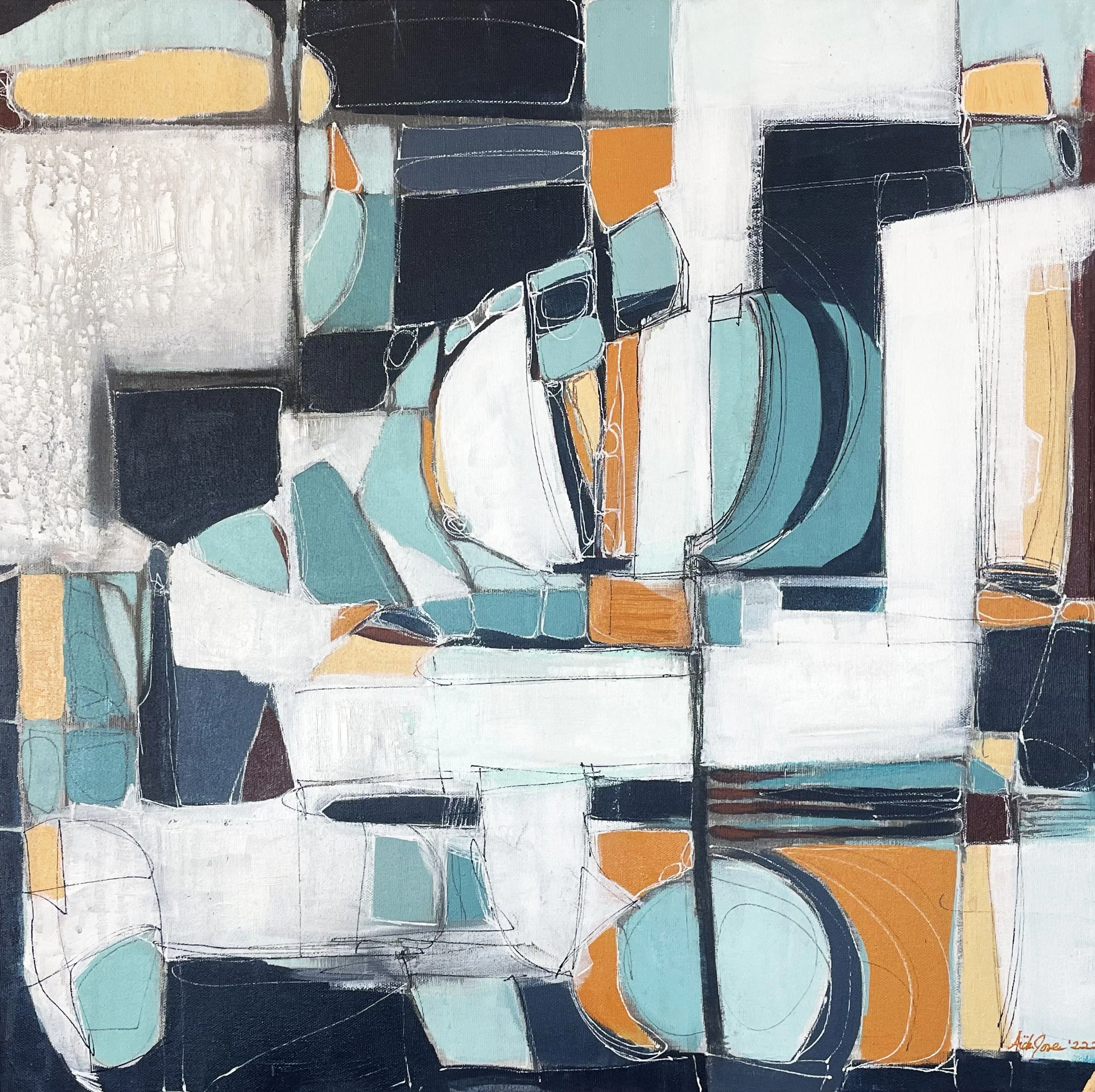 “In this new series, Jones embraces color like never before using bold and bright, dark and light hues to play against one another,” says The Herb + Milly Iris Gallery curator, Jeremy Moss. “Add to this Jones’ excellent use of color, texture and negative space, along with thoughtful attention to abstract detail and you have a thing of beauty. The exquisite execution of her pieces invariably reveals something new each time you look at them.”